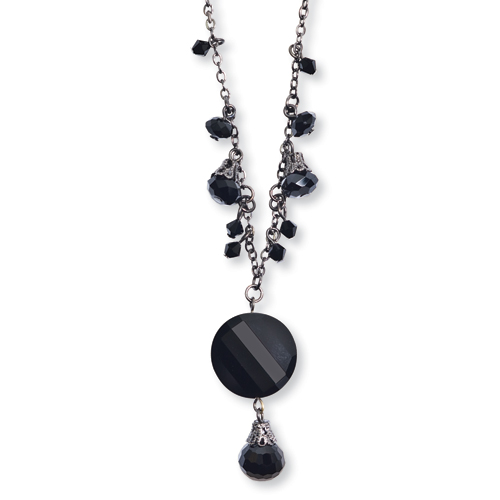 Black-plated Black Crystal Drop 16" With Extension Necklace