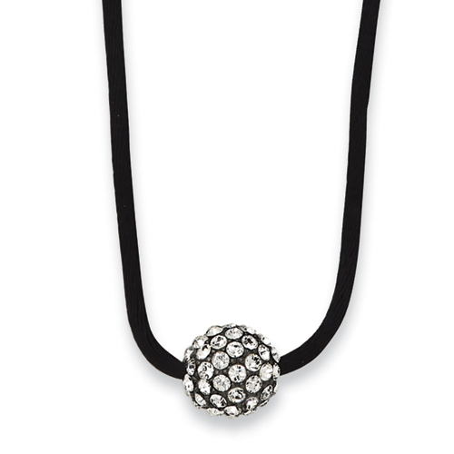 Black-plated Clear Crystal Fireball On 16" With Extension Satin Cord Necklace