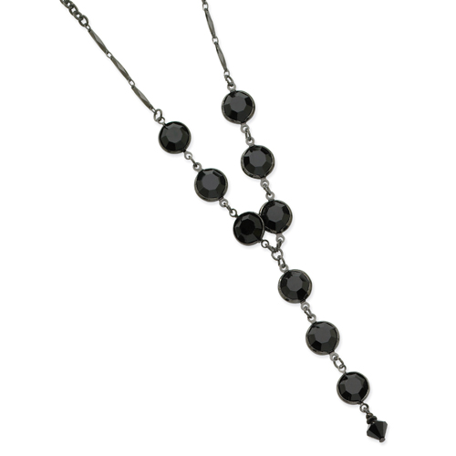Black-Plated Faceted Jet Bead Bezel Drop Y 16'' Necklace