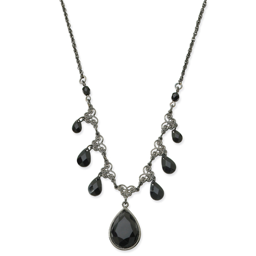 Black-Plated Faceted Jet Bead Multi Teardrop 16" Necklace