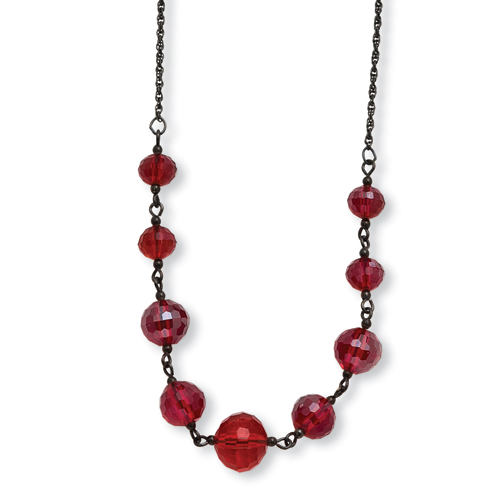 Black-plated Red Crystal Beaded 16" With Extension Necklace