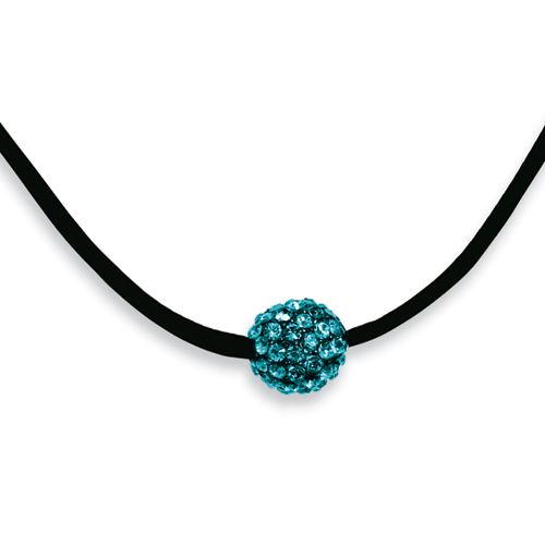 Black-plated Teal Crystal Fireball On 16" With Extension Satin Cord Necklace