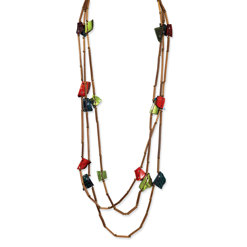 Capiz Shell, Bamboo & Acrylic Bead Slip-on Necklace