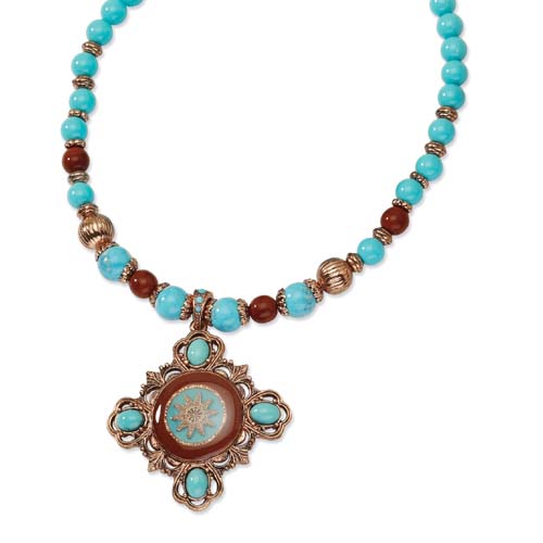 Copper-tone Aqua & Brown Beads Enameled 16" With Extension Necklace