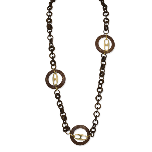 Gold-tone Coconut & Natural Wood 38" Slip-on Necklace