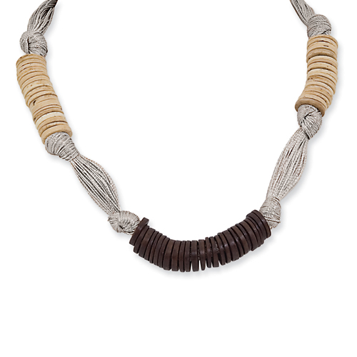 Picture of Gold-tone Coconut & White Wood Aster Fabric Necklace