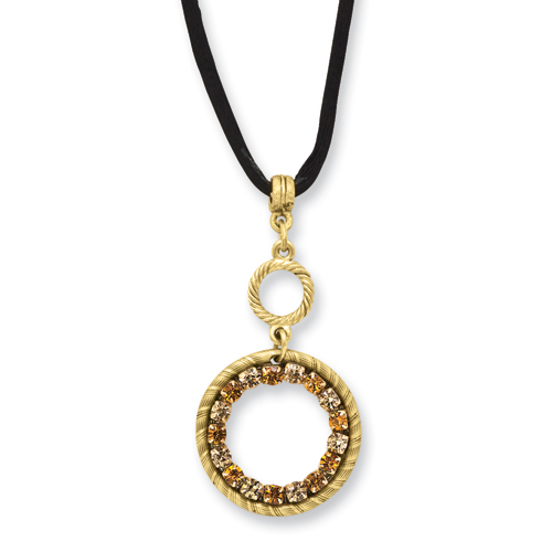 Gold-tone Light & Dark Yellow Crystal Circle on 16" With Extension Satin Cord Necklace