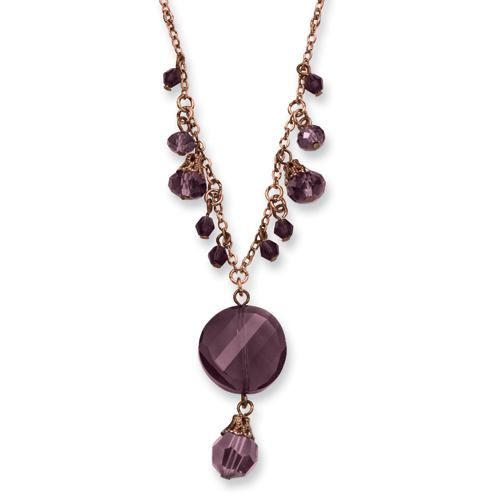Rose-tone Dark Red Crystal Drop 16" With Extension Necklace