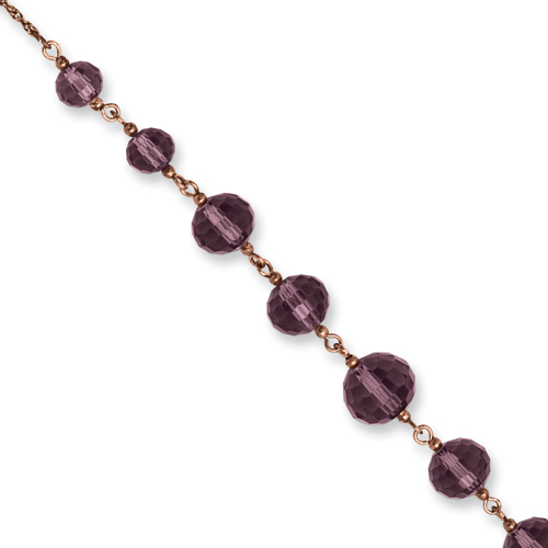 Rose-tone Purple Crystal Bead 16" With Extension Necklace