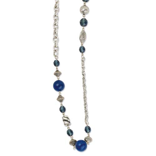 Silver-tone Blue Bead & Crystal 44" Necklace
