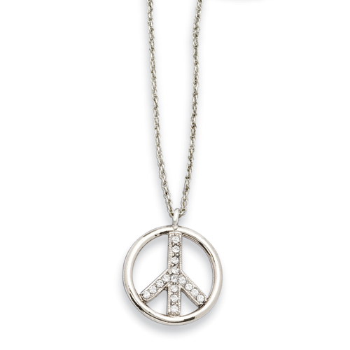 Silver-tone Crystal Peace Symbol 16" Necklace
