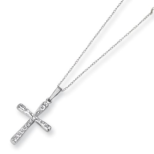 14k White Gold Diamond Fascination 18in Cross Necklace