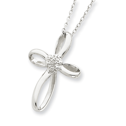Picture of Sterling Silver Cross Diamond Necklace chain