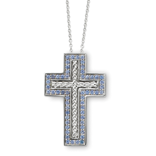 Sterling Silver Decamber Cubic Zirconia Birthstone Message of the Cross 18" Necklace