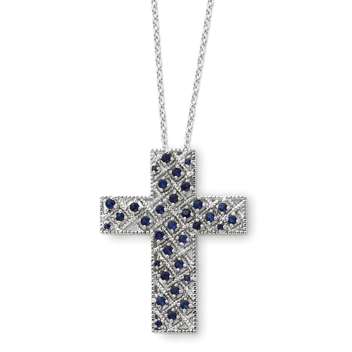 Sterling Silver September Cubic Zirconia Birthstone Message Of the Cross 18" Necklace