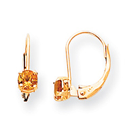 14K Gold Round November Citrine Leverback Earrings