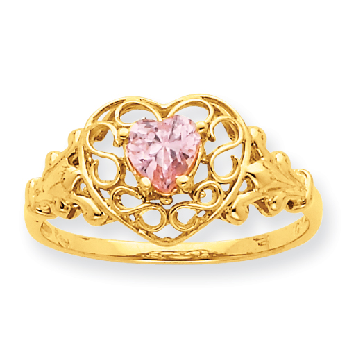 10k Polished Geniune Pink Tourmaline Birthstone Ring