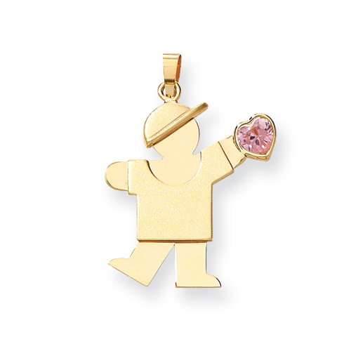 14K Yellow Gold & Rhodium October/Pink Tourmaline Baby Shoe Charm