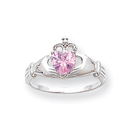 Picture of 14K White Gold CZ October Birthstone Claddagh Heart Ring
