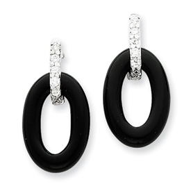 Picture of Sterling Silver Onyx & Cubic Zirconia Earrings