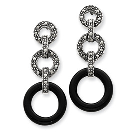 Sterling Silver Onyx & Marcasite Circles Post Earrings