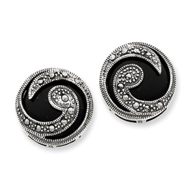 Picture of Sterling Silver Onyx & Marcasite Post Earrings