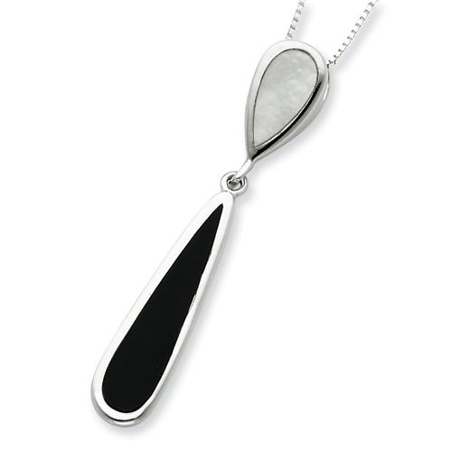 Sterling Silver Onyx/MOP Pendant w/Chain chain