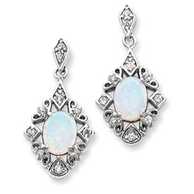 Picture of Sterling Silver Created Opal & CZ Earrings