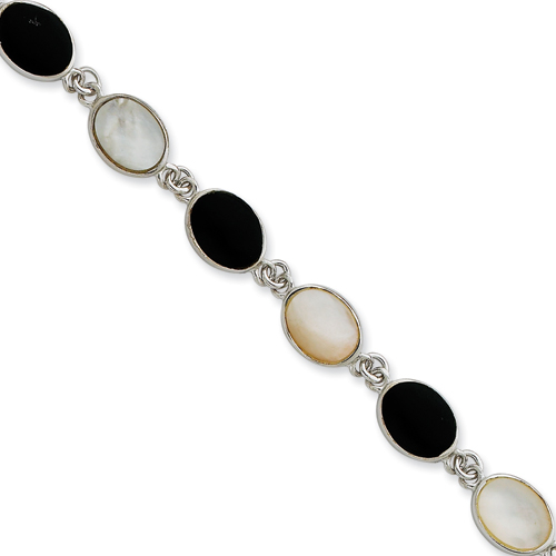Sterling Silver Onyx & Mother of Pearl Bracelet