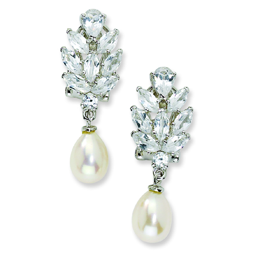 Picture of Sterling Silver CZ Cultured Pearl Omega Back Earrings