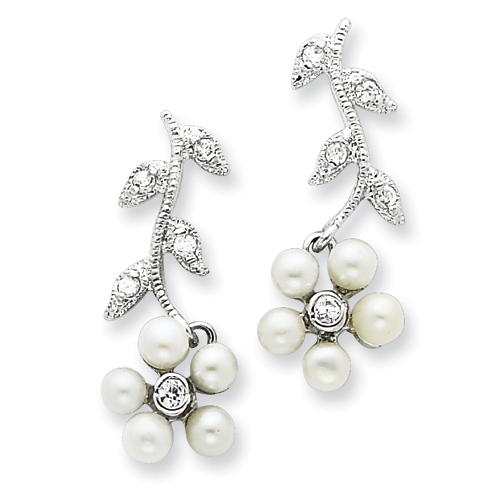 Sterling Silver Freshwater Cultured Pearl CZ Post Earrings