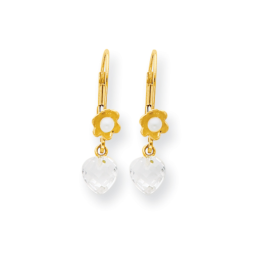 14k Flower CZ/Freshwater Cultured Pearl Leverback Earrings