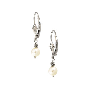 14K Gold Pair 05.50- Lever Back Earring With White Pearl