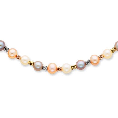 Picture of 14K Tri Color Cultured Pearl Necklace chain