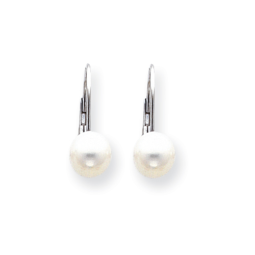 Picture of 14k White Gold 7mm Pearl Leverback Earrings