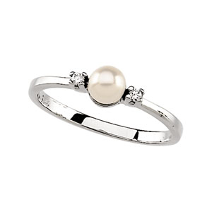 Picture of 14K White Gold Cultured Pearl And Diamond Ring