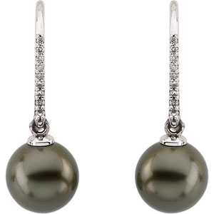 14K White Gold Pair Near Round 1 8c Tahitian Pearl And Diamond Earring