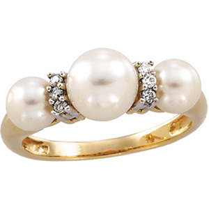 14K Yellow Gold 07.00- 05.00-05.50 Freshwater Cultured Pearl And Diamond Ring
