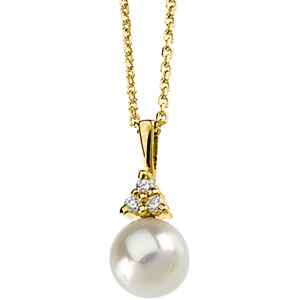 14K Yellow Gold Cultured Pearl And Asmb Pendant On Cable Chain