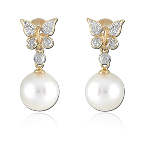 Picture of 14K Yellow Gold Pearl & Diamond Earrings