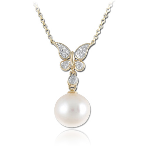 Picture of 14K Yellow Gold Pearl & Diamond Necklace