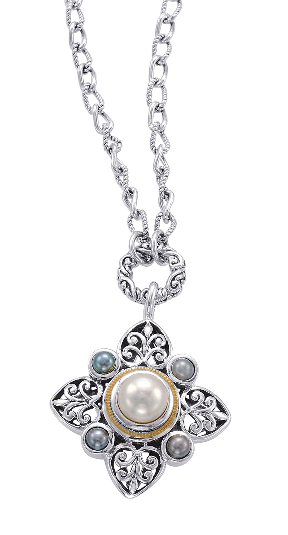Alesandro Menegati 18K Accented Sterling Silver Necklace with Pearl Cabochon, Grey Pearl