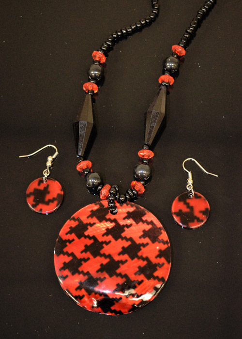 Black and Red Mother of Pearl Necklace and Earrings Set