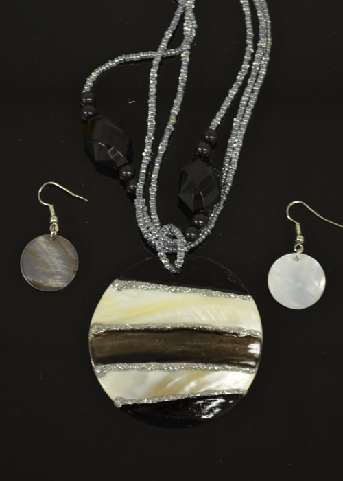 Picture of Black and White Mother of Pearl Necklace and Earrings Set