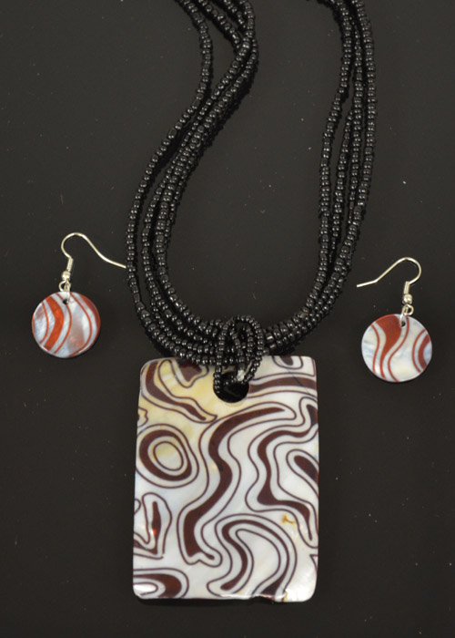 Black,Brown and Cream Mother of Pearl Necklace and Earrings Set