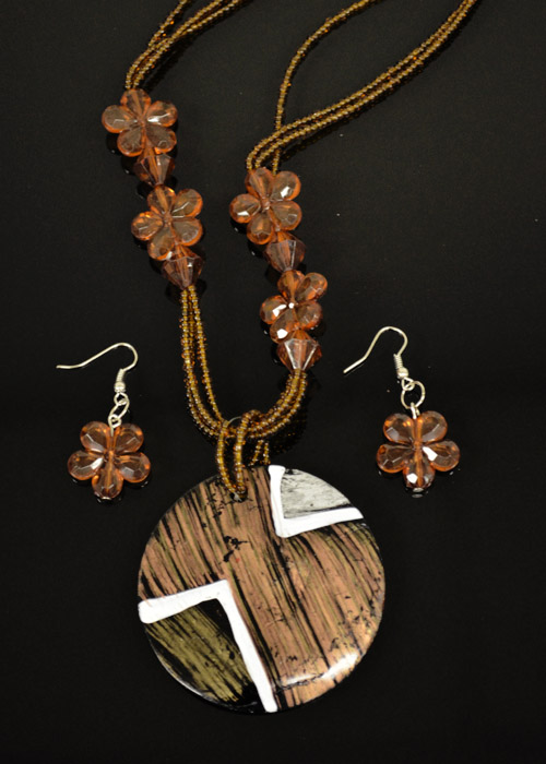 Picture of Brown Mother of Pearl Necklace and Earrings Set