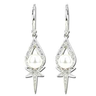 14K White Gold Pair Freshwater Cultured Pearl And Diamond Earring