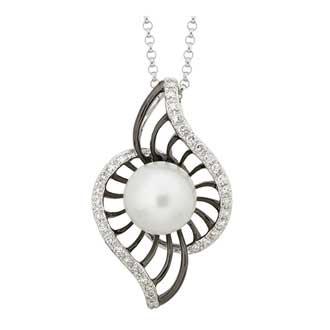 14K White Gold Link Chain With 10-11mm Tahitian Cultured Pearl And Diamond  Necklace