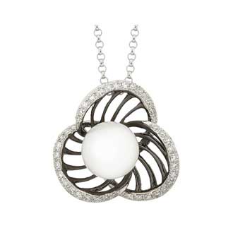 14K White Gold Link Chain With 10-11mm Tahitian Cultured Pearl And Diamond  Necklace