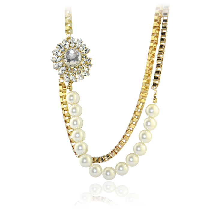 Gold-Tone Pearl And CZ Fancy Stylish Necklace